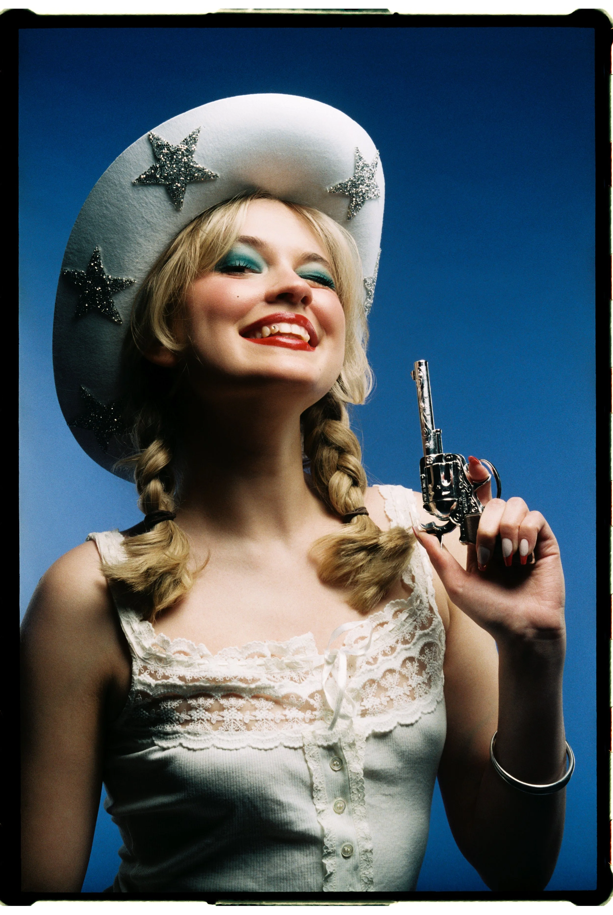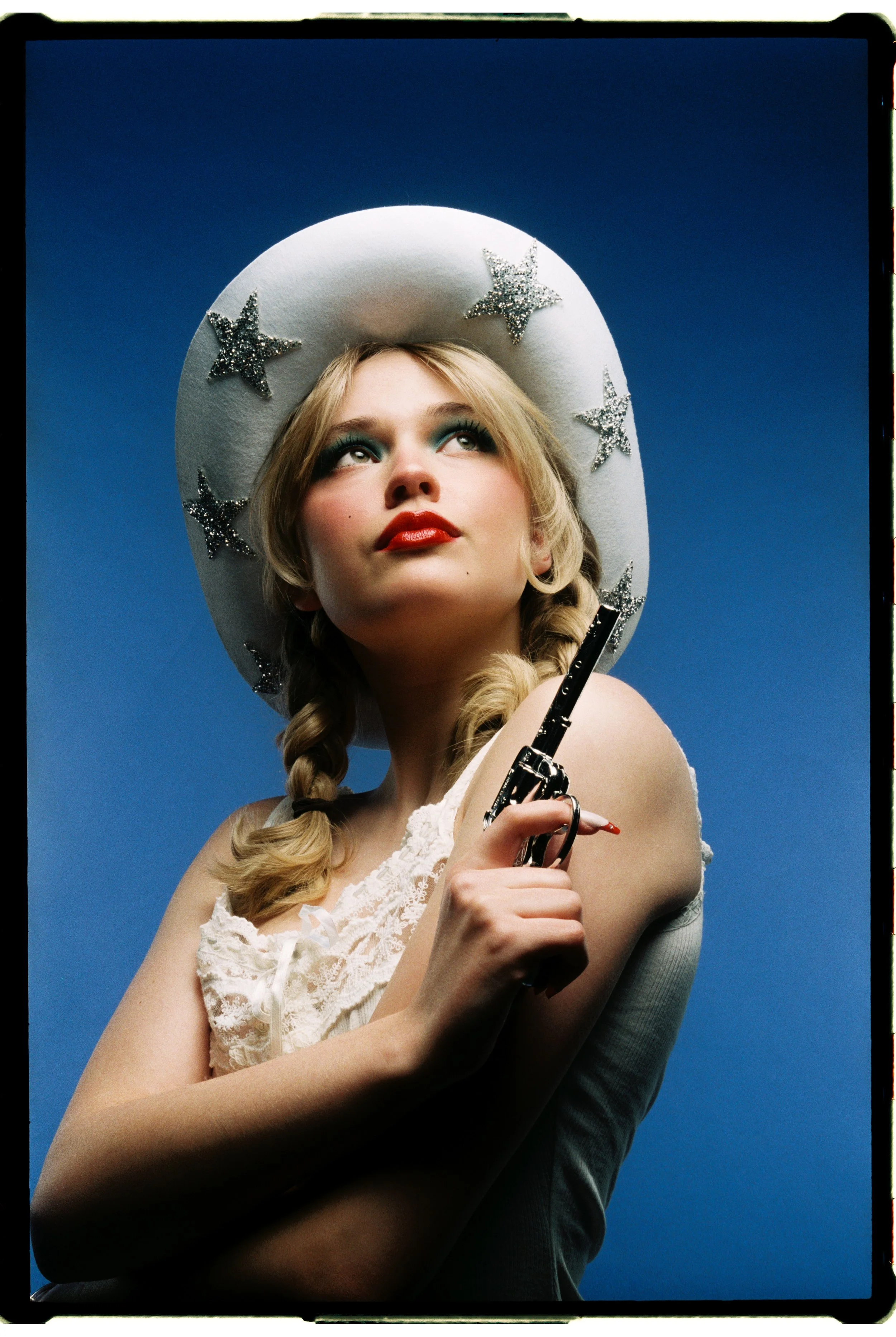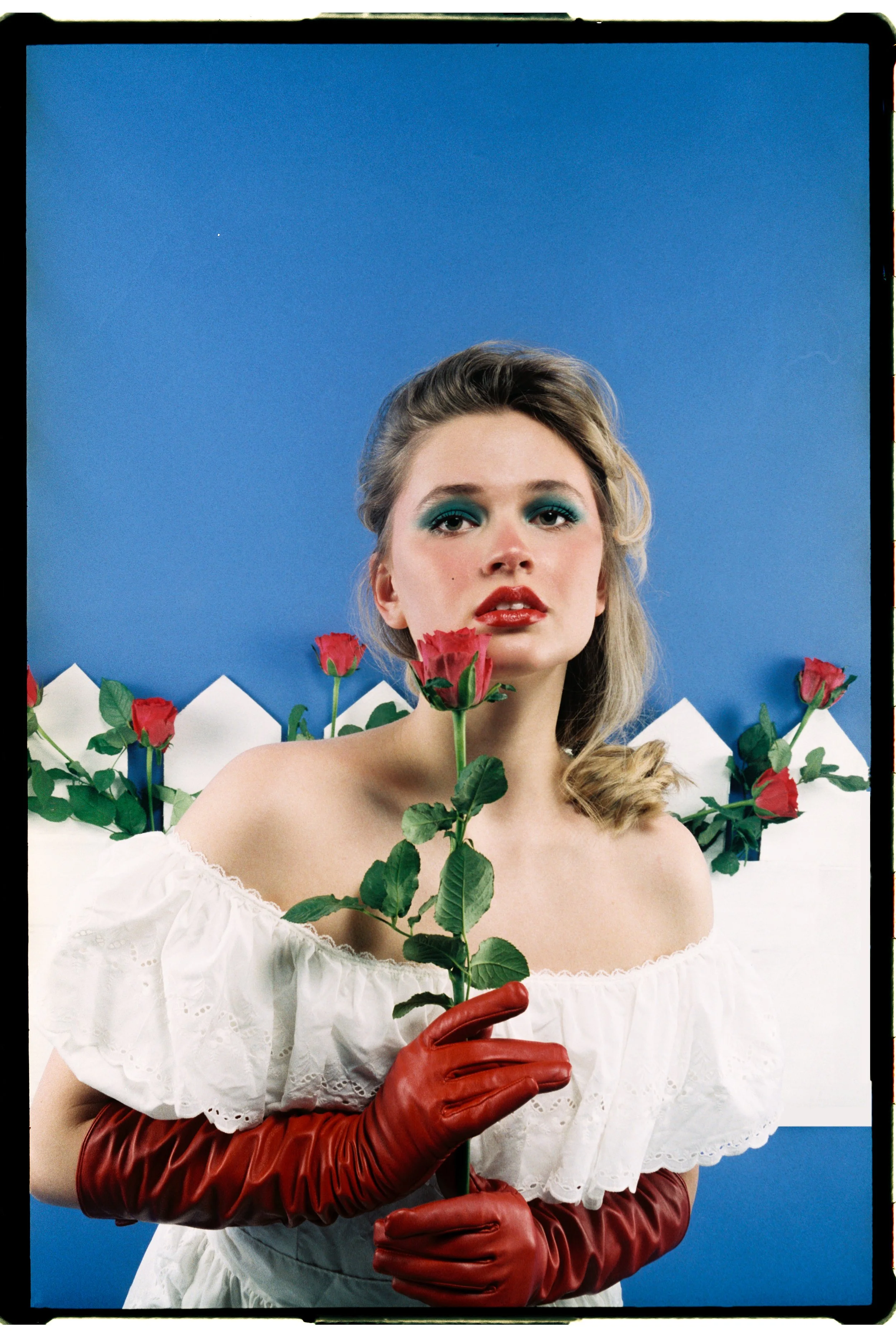 This editorial takes inspiration from vintage advertising and pin-up girls to create a a surreal atmosphere of western ideology. Playing with only the colours blue, red and white, the concept imitates different characters that can represent ‘Miss America’ in an ironic and exagerated way. More than the focus on fashion, this editorial is designed to creatively reflect on the role of beauty in propaganda.