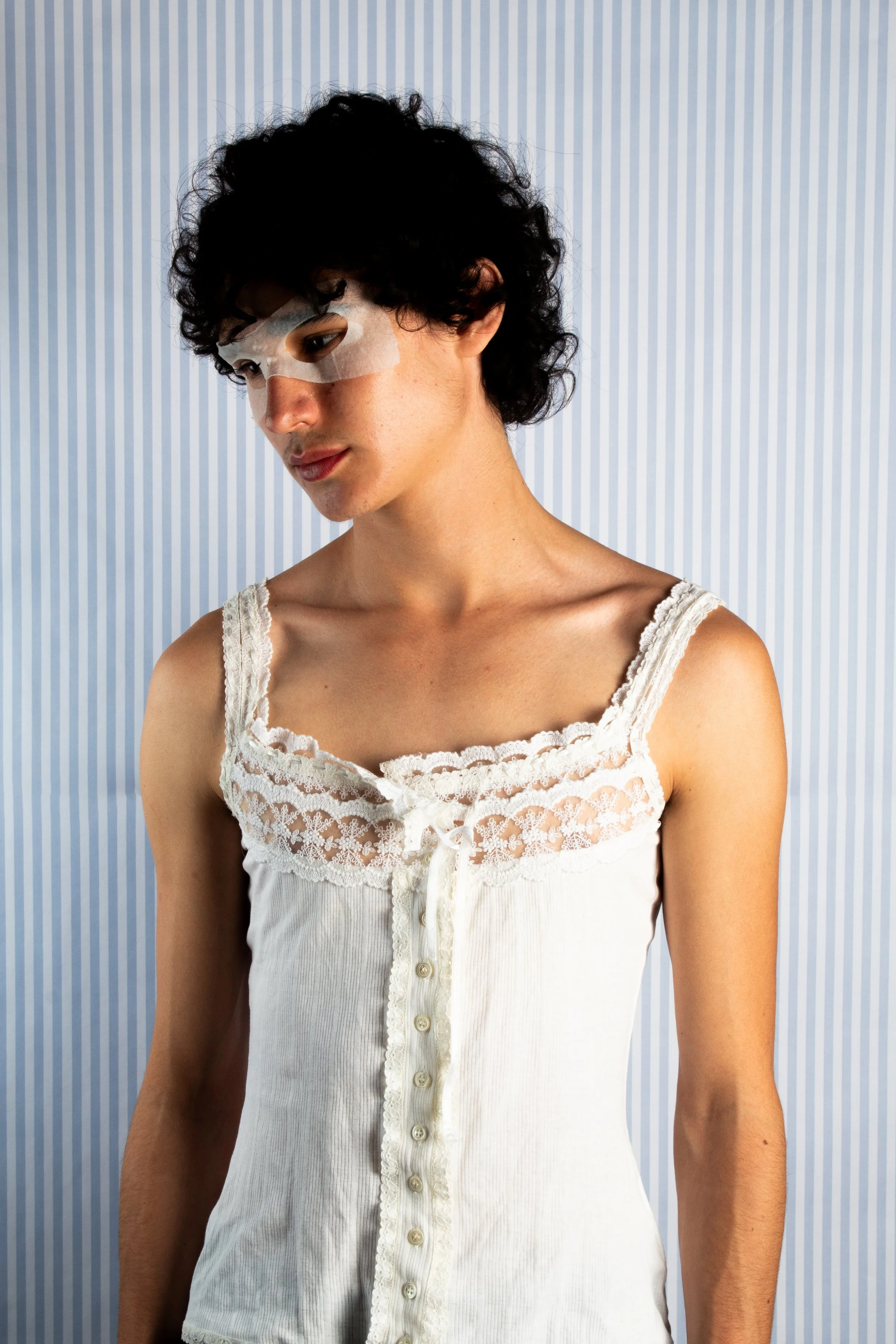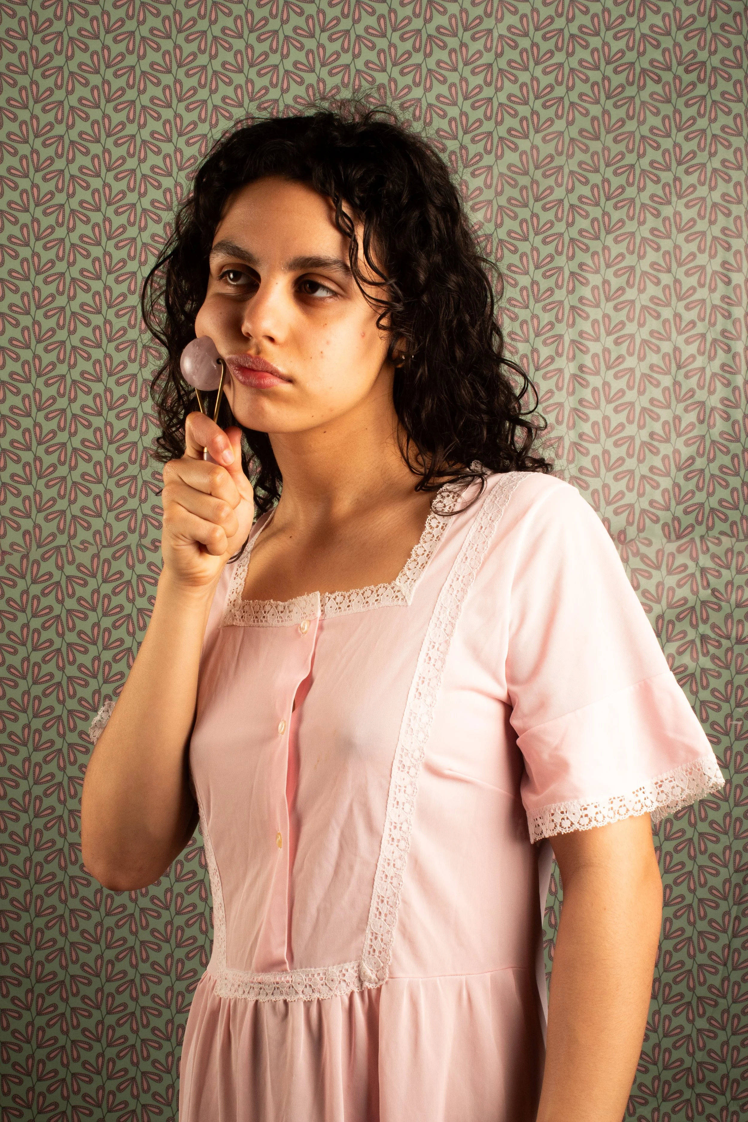 Smile Lines is a visual project taking both film and photographic form in pursuit of starting a conversation on today’s pressing beauty standards. Similar to its partner project Pedigree, Smile Lines uses imagined scenarios to create a portrait series that reflects on reality. The conversation zooms in on society’s self-care culture, exhibited particularly strongly online and on the social media targeted towards young people. What often disguises itself as a form of personal care is actually a promotion of visual maintenance, issued to impressionable minds. For decades, capitalism has benefited from the advertising of beauty products that women may ‘need’, but now in 2025, instead of progress digressing away from that, we see an expansion of the problem. This project was made in response to the recent online trend promoting the avoidance of “smile lines”, providing tips and tricks to young people on how to combat signs of aging. The saturation of dystopian beauty rituals on social media infiltrates our media, purchases and habits so discreetly that it hides under the concept of therapy and love. But, when the mental health of so many is negatively effected by this culture, are there even any smile lines to avoid?